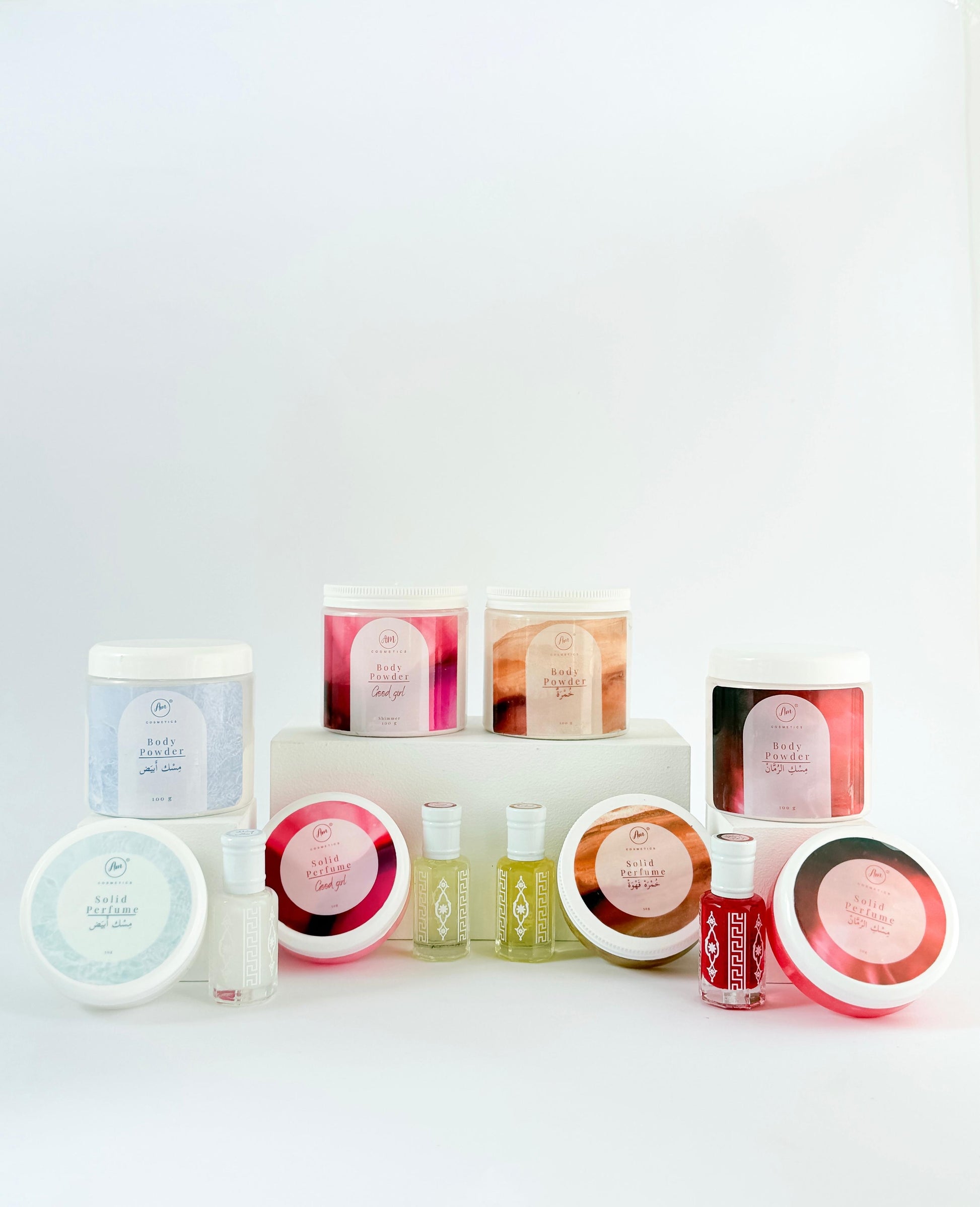Your complete body scent ritual in one set. From the soft touch of body powder to the richness of solid perfume and the long-lasting elegance of perfume oil—this trio keeps you fresh, radiant, and beautifully scented all day.